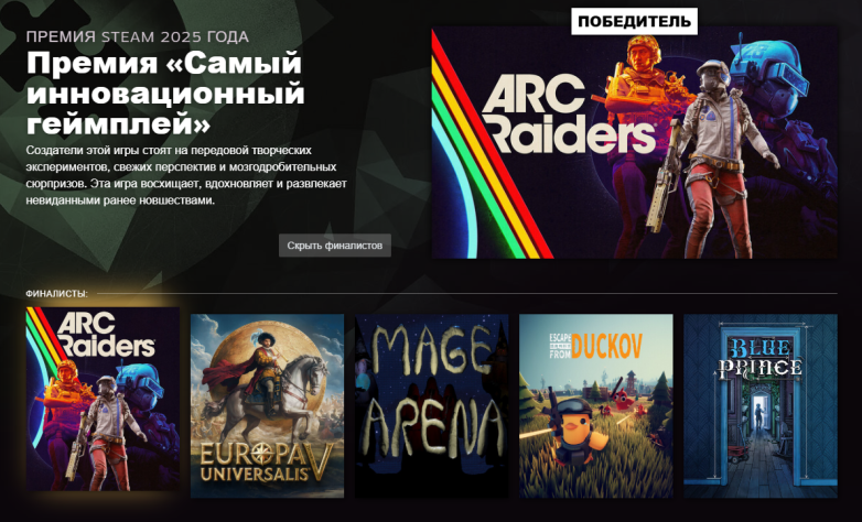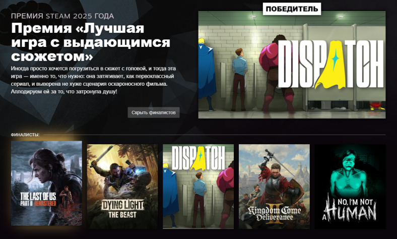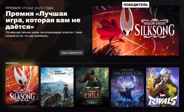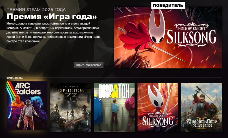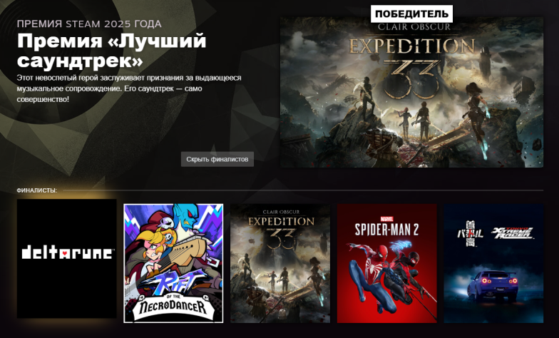 Valve подвела итоги «Премии Steam 2025» — нет, победила не Clair Obscur: Expedition 33